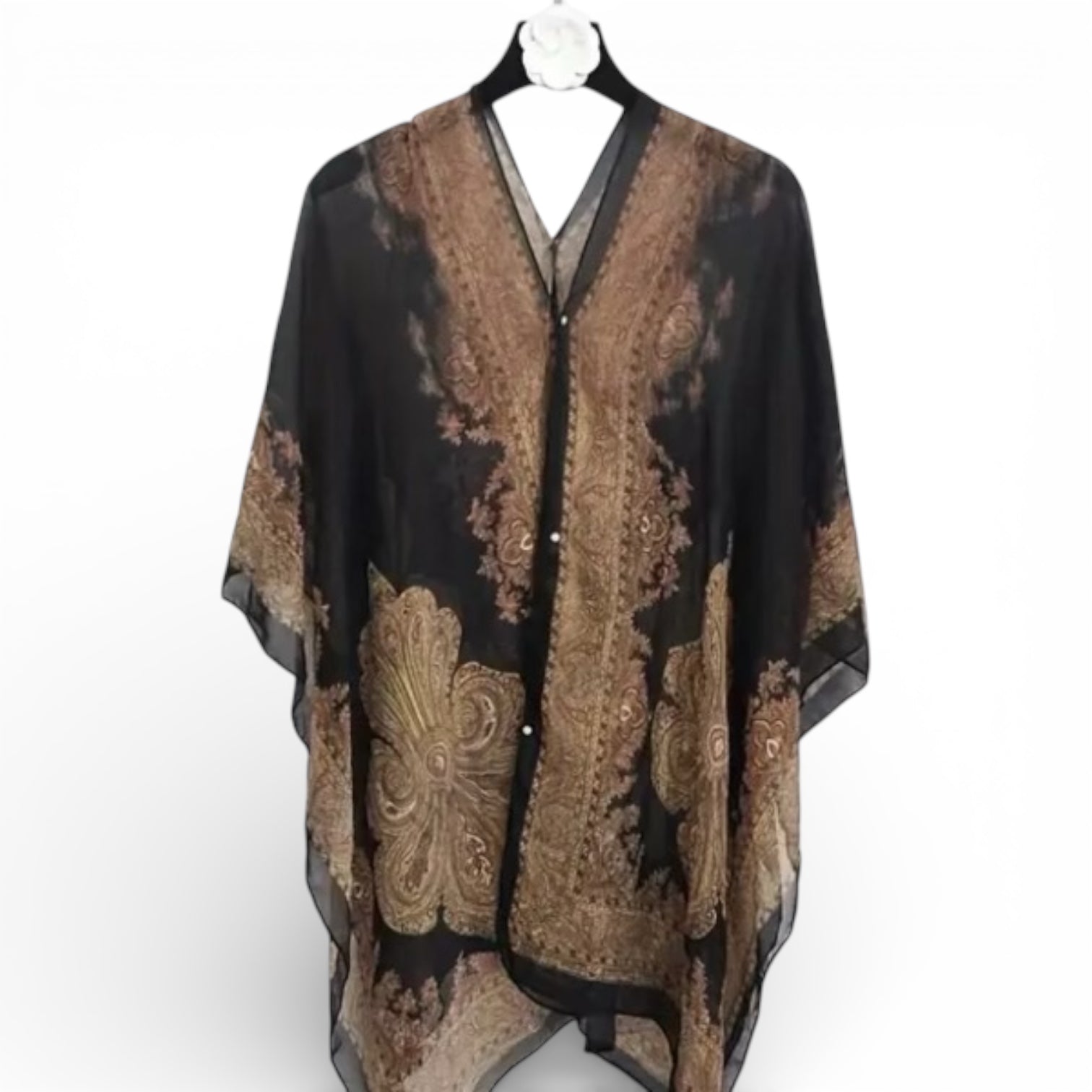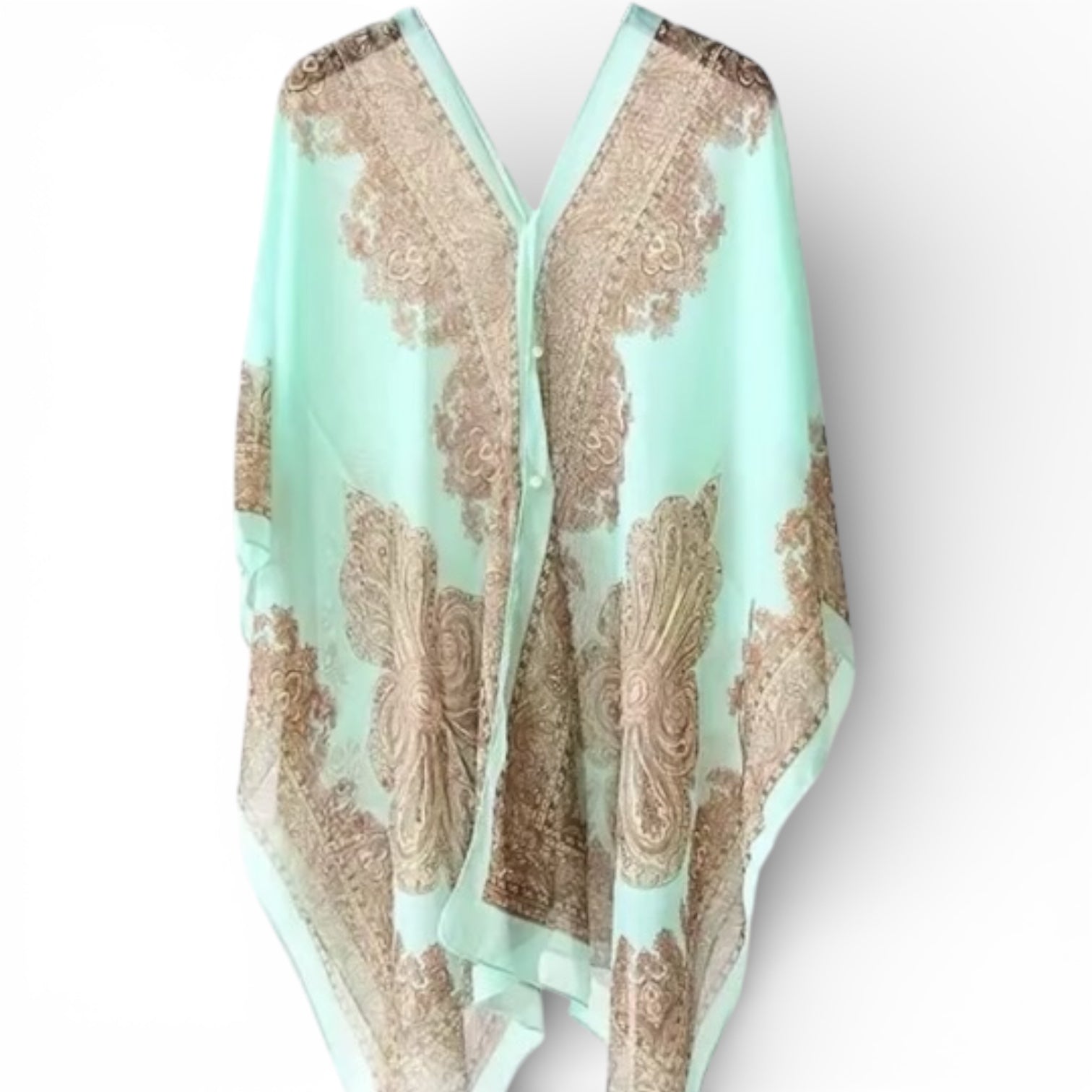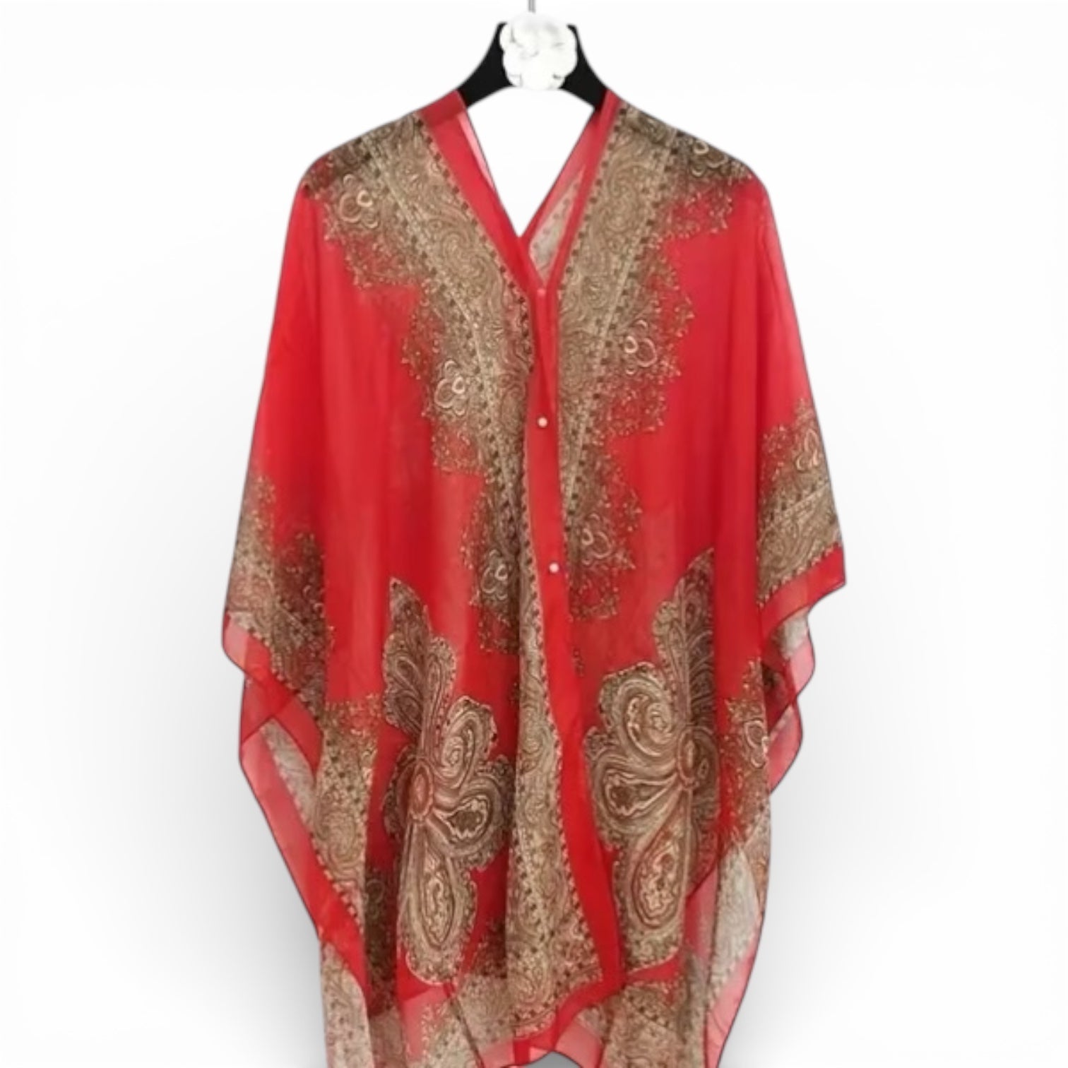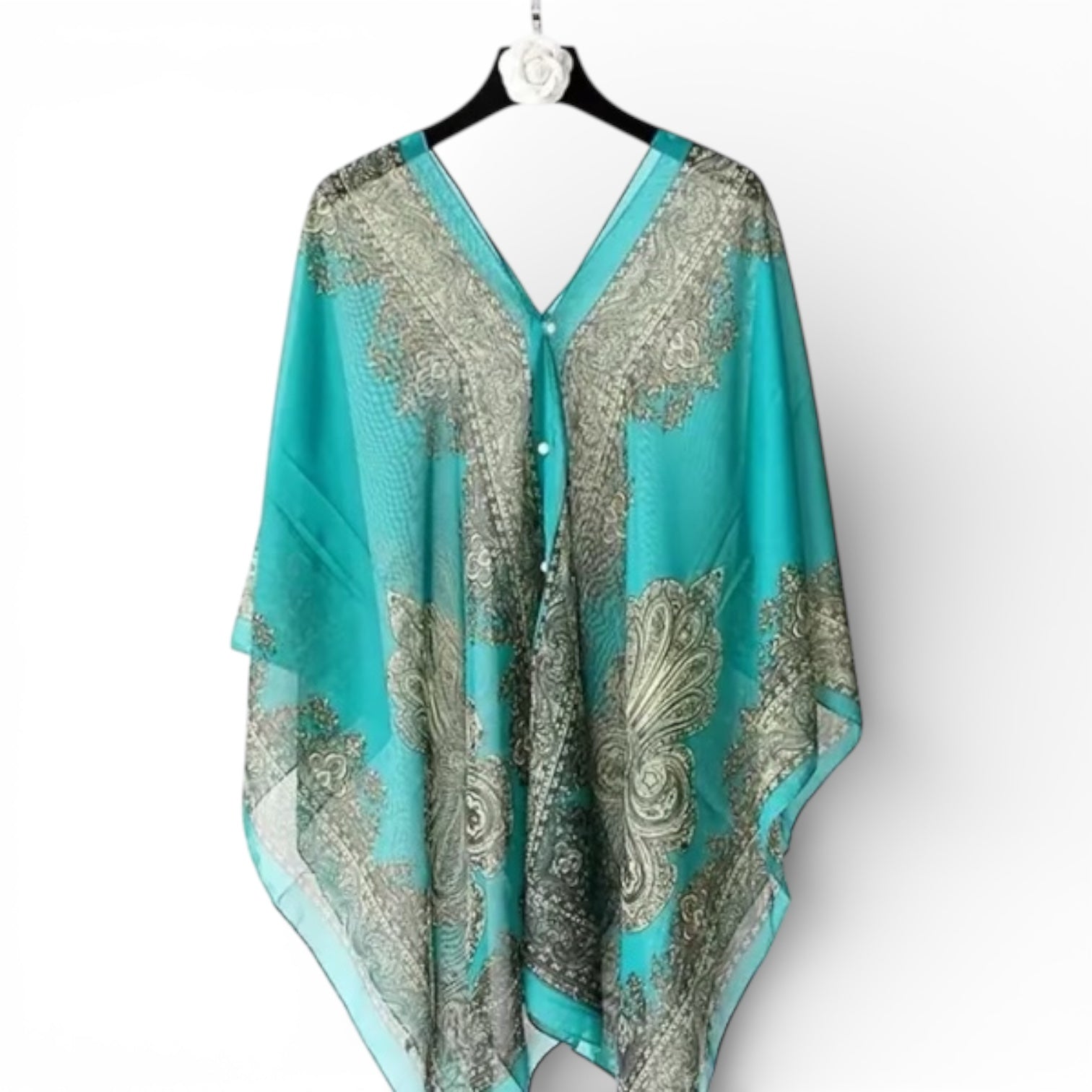 This top packs a punch. 3 in one convertible top. Feature elements that allow to be worn in multiple ways, such as a short top, which can be worn with a skirt or pants, a longer top, as shown below to wear over bathers or leggings, or as a scarf for the cooler months. Simple pearl buttons, you can dress this top up, or down. Great to take on holiday, light weight material, 100% polyester, and can be gently washed and will dry quickly. Check out the images below to see the way the top can be used. A versatile top at a small price. Several colours to choose from.